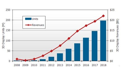 随着3D电影的日趋风靡,在家电厂商纷纷推出3D液晶电视以后。显示器也逐渐呈现出了3D趋势。裸眼3D显示器由于设计层面较为复杂,导致单价较高(目前售价比普通显示器高2倍左右)所以目前应用在显示器领域的主流3D技术主要是带眼睛的偏光式3D技术与快门式3D技术两种。有数据表明,虽然目前3D显示器所占的市场份额还不算很高,但是随着产品价格下降以及片源问题的解决,在未来几年内,3D显示器在市场占有率方面会有明显的上升并最终成为市场的主流。