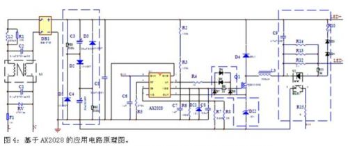 电路采用了EMI抑制电路、整流滤波电路、填谷PFC电路、AX2028恒流系统电路来驱动LED工作。