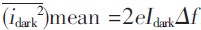 ②暗电流噪声。光电探测器在没有光照时,由于负偏压的作用会产生毫微安级的"暗光流".其噪声均方值为: