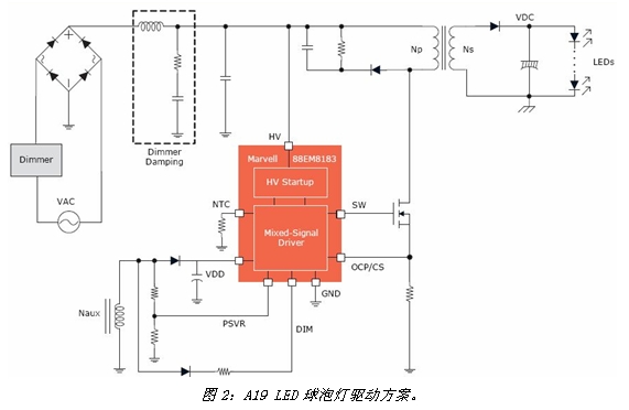 消费者用LED节能灯取代白炽灯等传统照明解决方案的同时,也希望得到同样或更好的照明体验。不幸的是,他们常常发现LED灯在调光能力上有问题,因此觉得LED灯几乎不能调光或调光时会闪烁。很多LED灯与家中已安装的壁式调光器也不兼容。Marvell最新的88EM8183深度调光单级交流/直流LED驱动器IC为OEM厂商和ODM厂商提供了兼容性最广泛的调光解决方案,该IC与全球市场上绝大多数调光器都兼容,而且提供卓越的光输出质量,可提高消费者的满意度,减少退货。