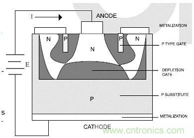 当一个反向偏压加到PN结的阴极和阳极时,这个恒流二极管开始导通,当反向偏压增加到VL时(见图2),其电流由于N区的体电阻也跟着增加,当电流增加到 曲线的拐点时,在N区和P型栅之间形成一个耗尽层。这个耗尽层减小了N区中电流的路径也就减慢了电流的增加速度。结果这个耗尽层遇到了P型栅于是就产生了 夹断效应,这使得电流变成恒定而几乎和所加电压无关,直到所加电压达到一个击穿点Vb。如果所加电压反过来,那么就相当于一个正向电压加到一个PN结,其 特性就和一个普通二极管加上正向电压时一样。