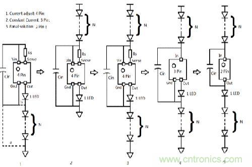 其中4条管脚的恒流二极管主要用于可调恒流电流。