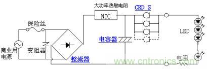 我们知道LED必须采用恒流源来驱动,否则由于它的负温度系数,而会使电流急剧上升导致结温升高,寿命缩短。而恒流二极管的恒流作用恰恰可以用来驱动LED。最简单的方法就是直接和LED串联。但是我们在把恒流二极管用于LED驱动时必须注意选择恰当的电流和耐压。