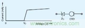 它在某一个电压范围内有一段恒流区间,在这个区间,流经的电流几乎不变,VL为到达IL的电压值,IL大约为0.8Ip,Vb为击穿电压值。但是实际的恒流二极管并不是那么理想。图3是美国Supertex的CL1恒流二极管的特性。它的电流仍然会随电压而有所增加。