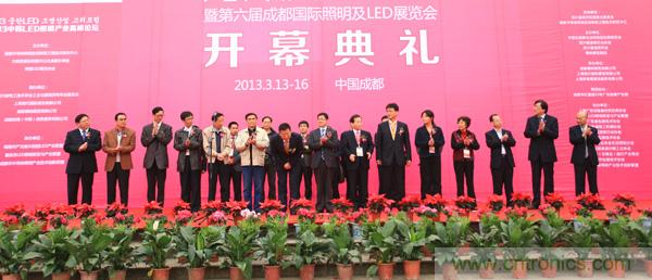 大会开幕式由成都德纳展览有限公司总经理李仕全先生主持,出席开幕式嘉宾包括:成都市锦江区委副书记/区长张余松、韩国产业融合协会崔万范副会长、韩国led普及协会方炳国专务理事、四川省建设厅原副厅长/四川省市政市容协会理事长杨启厚、四川省照明电器协会常务副理事长/秘书长陈白瑶、国家半导体联盟副秘书长/重庆市LED照明研发与产业联盟秘书长陈伟民、四川省市政市容协会城市照明分会秘书长叶建华、上海现代国际展览有限公司总经理张定国、上海新格雷展览服务有限公司总经理郁士明、德纳展览集团董事长潘伟。上海现代国际展览有限公司张定国先生、成都市锦江区区委副书记/区长张余松同志、德纳展览集团董事长潘伟先生发表重要致辞,会后领导参观展会并给予了高度评价。