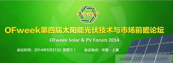 2014年5月21日,由OFweek主办、OFweek太阳能光伏网承办的“OFweek Solar & PV Forum 2014太阳能光伏技术与市场前瞻论坛”将在上海隆重举行。本次峰会拟邀请杜邦、MANZ、特变、山亿新能源等知名企业专家、高层,以及政策决策机构、行业组织机构嘉宾主讲太阳能电池转换效率的技术、CIGS薄膜电池技术与投资、光伏电站项目投资收益率(IRR)等重大议题。同时OFweek行业研究中心太阳能光伏领域分析师团队针对2014年中国光伏电站领域的建设热点和投资机会共同组织本次论坛,给业界及希望在光伏领域寻找新机会的投资方以明确的分析和投资指南。