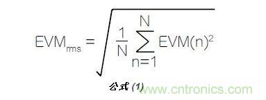 这些考虑为表示为百分数的EVM提供了以下公式,见等式1:其中EVM(n)是归一化后的每个符号的误差矢量幅度,N是组里的符号数量。如上所述,TR标准假设由最大参考符号进行归一化。