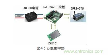 这就是二级终端ZigBee集中器,它由ZM5161???,Iot-3960工控板和GPRS-DTU组成,主要用来实现ZigBee信号与GPRS信号的转换,通过公网传输给控制中心。