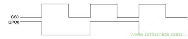 设想一下,房间灯光用机械开关控制。按下一次开关,灯会打开。只要开关继续保持这种状态,灯就会一直开着。再按一次开关,灯就会熄灭。切换特性类似于这种机械切换开关。当触摸电容式按键时,相应的LED灯会点亮。即便用户手指离开按键,LED灯还会一直亮着。如果用户再次触摸按键,LED灯就会关闭。也就是说,在每个电容式传感器状态的上升沿,输出状态都会切换其状态,具体如下图所示。CS0反映传感器状态,而GPO0反映LED状态。