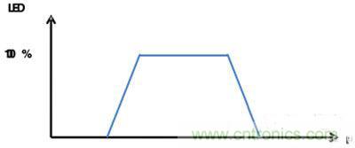 我们在本文开始处通过笔记本电脑的电源键为例简单介绍了一下呼吸效应。持续地逐渐提升或逐渐下降两级之间的占空比能让LED形成“呼吸”的效果,如图6所示。待机模式下电源按键支持呼吸效应能告诉用户电源按键是活动状态并能进行操作。