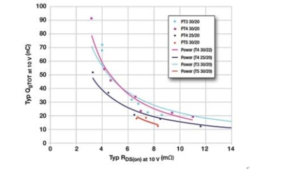 RDS(ON)直接与传导损耗有关,而Qg直接与开关损耗有关。FOM越小,性能越好。