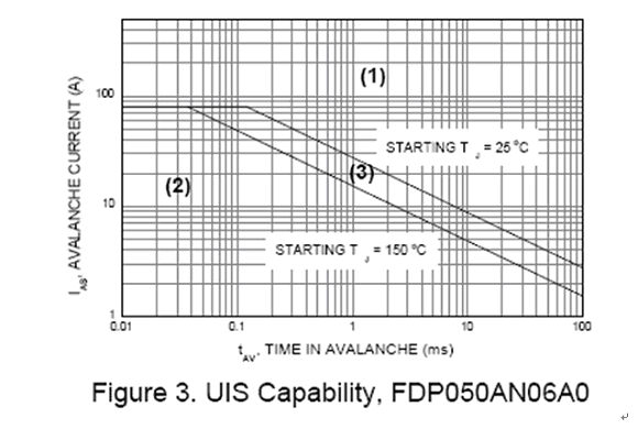 评估方式 : 单一脉冲 UIS(Unclamped Inductive Switching) 的安全工作范围