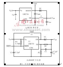 图1为二款不同功能的开关型DC/DC转换电路。它们具有转换效率高、重量轻,既可以升压,又可以降压,输出功率大等特点。由于其转换效率高,电路中元器件的发热量相对较小。由于电路处于较高频率的开关工作状态,只需采用小容量、小体积的滤波电容即可见效。对输入源电压波动的容裕范围比较宽。