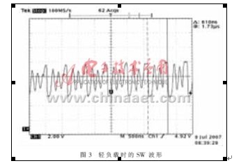 如果电源转换电路设计采用清一色的开关电源,转换效率会很高,但是高频电磁波的干扰也会很大。在调试过程中,测量SW引脚的波形发现,当稳压器输出较大电流时,功率MOS管工作在固定的频率和固定的脉宽下,占空比和开关波形处在正常状态,如图2所示。而当输出负载很轻(20mA以下)时,转换器的振荡频率虽然没有发生变化,但是占空比和开关波形出现了较大的畸变,如图3所示,由方波变成了阻尼振荡波,电路处在一种不稳定的工作状态,这是工作电流太小而引起的。根据实验结果,把CCD相机电源的系统结构设计规划成以下形式:采用线性稳压或LDO电路实现小电流负载的转换,而升压和大电流输出采用BOOST/BUCK开关型转换电路,同时实现关键稳压器的上电顺序控制。该形式的设计特点是:采用开关型稳压和线性稳压相混合的结构。CCD相机的电源系统组成结构如图4所示。