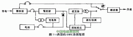 UPS不问断电源是个特殊的设备,它既是电网的负载,又要给负载提供电源。所以它的EMC设计既要保证它不对电网造成电磁污染,又要保证它提供给负载的是个干净的电源。UPS本身振荡电路就是一个干扰源。典型的UPS系统框图如图l所示。它的基本结构是一套将交流市电变为直流电的整流器、充电器和把直流电再变为交流电的逆变器,电池在交流正常供电对储存能量且维持在一个正常的充电电压上.一旦市电中断,蓄电池立即对逆变器供电 保证UPS交流输出。