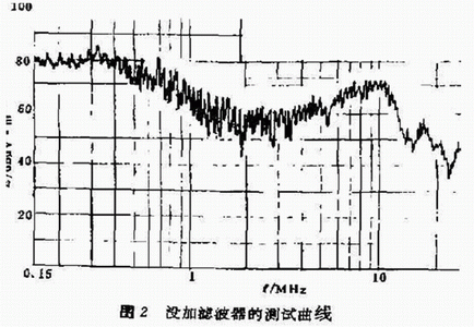 我们知道,架空的输电线上不可避免地会检拾到各种高频辐射干扰,这种干扰往往以共模或差模形式出现,从而在电源线上产生传导干扰,通过正确的接地,可以抑制这种干扰,但只是在一定程度上的改善,因而可以加滤波器予以抑制(见测试曲线)。
