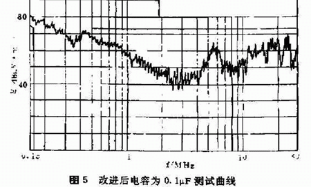 从测试图4和图5中能很清楚地看出测试结果。不合格的为选用0.OμF的电容滤波,改进后选用0.1μF的电容滤波测试结果台格。滤波器的安装质量同样对衰减特性影响很大,只有把滤波器正确地安装到UPS不间断电源上,才能获得预期的衰减特性.