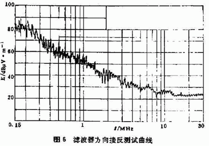通常EMI滤波器的电路是无源网络,具有其互易性,但从实际测试中了解到,有些滤波器输入输出端命名是针对干扰源而言的.有些命名是针对电路而言的。因此,在抑制干扰能力上就稍有差别 从图6和图7可以清楚地看出,滤波器反接时.对低频干扰抑制减弱,从而使UPS系统内部干扰信号窜入电源线,而引起超差.经转向后,就合格了。