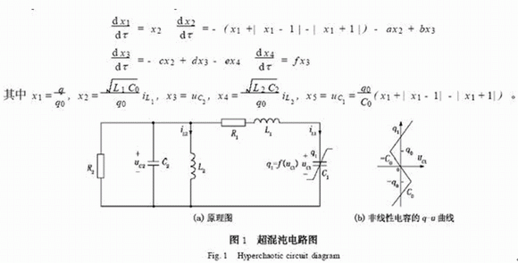 “超混沌电路”由5个线性元件和一个非线性电容元件组成。其电路如图1(a)所示。图1(b)为非线性电容元件的库伏特性。