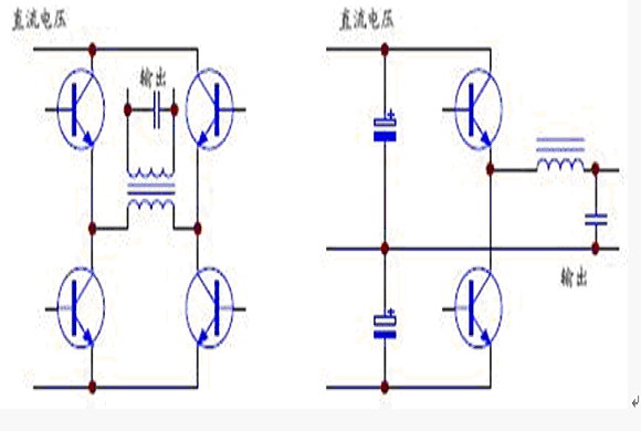 3KVA 以上功率的在线式UPS 几乎全部采用IGBT 作为逆变部分的功率器件,常用全桥式电路和半桥电路,如下图4。