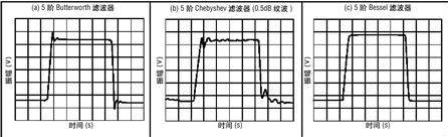图3 Butterworth (a)、Chebyshev (b)和Bessel (c) 低通5阶滤波器的时间响应|