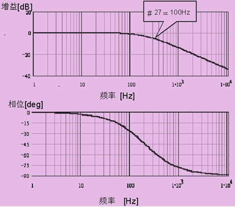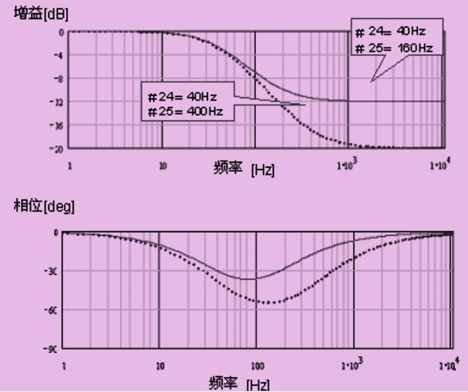 速度反馈滤波器也为一阶延迟滤波器,这是一个纯粹的惯性环节,相移趋于90°。在高频时增益小,当高频处有几个谐振点时适用。增益在-3db规定为带宽频率,设置范围从50~1000hz(见图3)。注意使用时相移可到90°,可能会发生相移引起的振荡。