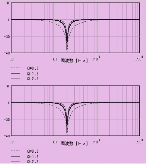 陷波滤波器又称为带阻滤波器,可对任意频率信号有效地阻断,甚至可使谐振点的增益降到零。当谐振峰值高而频率带宽窄时适用。通过改变品质因数(q值)使衰减特性变化急剧或平缓。频率设置范围从50~1500hz,q值设置范围从0.5~2.5(默认值1.5)。图2示出了陷波滤波器设置图。