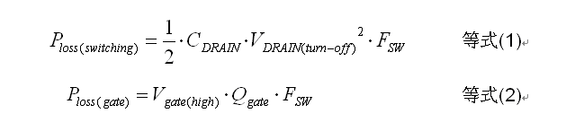 对于功率低于75 W的适配器而言,在工作能效提升方面,首先就需要考虑其损耗来源。事实上,其损耗主要包括两个方面,分别是开关损耗和门电荷(Qgate)损耗,这两类损耗分别可以用等式(1)和等式(2)来量化: