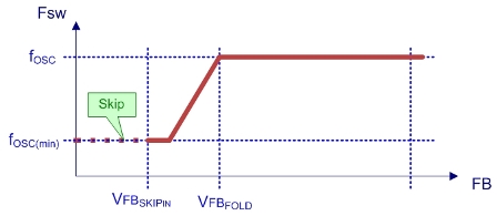 图1:NCP1237/38/87/88在轻载时采用频率反走技术降低开关损耗