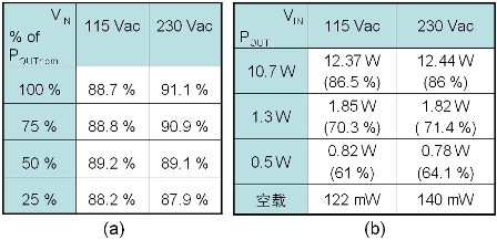 表2:NCP1380谷底开关控制器的工作能效及待机能耗(a、工作能效;b、轻载及空载能耗)