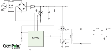 图3:安森美半导体基于NCP1901组合控制器的90 W笔记本适配器参考设计。