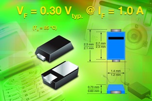 日前,Vishay Intertechnology宣布,推出两款新型肖特基整流器 --- MSS1P2U和MSS1P3U,在+85℃和+25℃时的前向压降分别只有0.35V和0.4V。器件采用小型MicroSMP功率封装,额定电压分别为20V(MSS1P2U)和30V(MSS1P3U),输出电流为1A,Vishay此次推出的新型器件的高电流功率密度和低热阻有助于实现节省空间的设计。