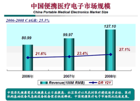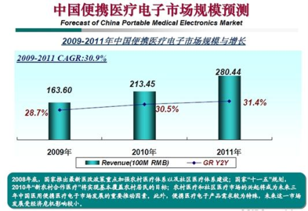 - 未来3年,中国便携医疗电子市场年复合增长率将超过30%