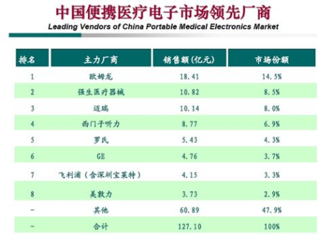 - 2008年国内便携式医疗电子产品市场的总量达到127亿的规模