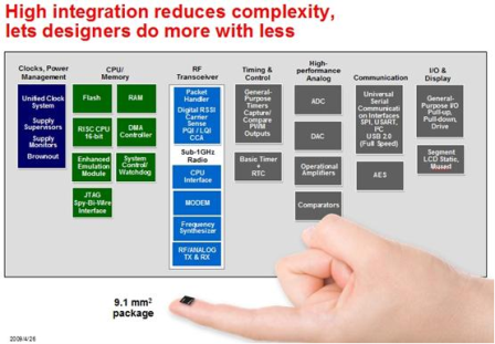 他重点绍了基于MSP430的血糖仪解决方案,完整的血糖仪只需要一颗MSP430就可以完成。如果一天典型的测量次数大概在1-2次,整个系统功耗是2uA,用一个钮扣电池供电,整个产品可以工作五至十年而无需更换电池!