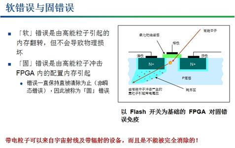 他指出对于Flash工艺器件来说,它对固错误有免疫性,因为Flash晶体管不会随意翻转,虽然有瞬态翻转,但瞬态过了以后会恢复生产。