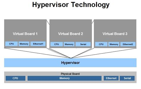 他还介绍了风河Hypervisor管理技术,它可以抽象出来三个不同的虚拟板,它们有自己CPU的执行资源,同时还有自己的Memory资源,也有自己的虚拟设备、外部设备,在终端控制这一块会接到不同的板子上。它们之间不会互相干扰,从而满足安全性要求苛刻的应用和非安全性苛刻资源的支配。