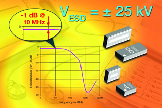 VEMI45LA-HNH和VEMI85LA-HGK为数据线路提供了瞬态?;ぃü薎EC 61000-4-2(ESD)在2.5kV(空气和接触放电)条件下的各项测试,也通过IEC 61000-4-5(闪电)在4A(tp = 8/20μs)条件下的测试。这些无铅的滤波器符合RoHS 2002/95/EC和WEEE 2002/96/EC法规,采用环境友好的“绿色”成形混合物进行制造。