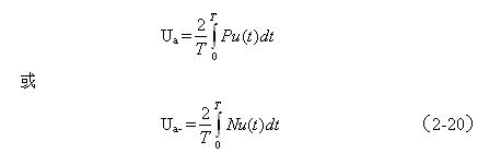 (2-19)、(2-20)式中,Ua和Ua-分别为各种波形的正、负半周平均值,Pu(t)和Nu(t)分别为各种波形的正波形函数(正半周)和负波形函数(负半周),T为种波形的周期。大部分交流电压波形,其正、负半周平均值的绝对值都相等,但符号相反。