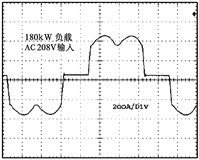 无变压器设计的IGBT整流器在10%~100%的负载范围内保持了高功率因数和低输入谐波,如图4所示。它与发电机高度兼容,从而避免了发电机选择的超容量要求。IGBT整流器的优秀输入特性在整个输入电压工作范围内都保持不变,如图5所示。