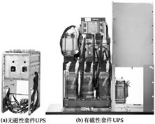 无变压器UPS可以取消的元件,如图7所示,称为传统UPS的“磁性套件”。它包括输出变压器、输入电感、DC母线电抗器、输出滤波器电感和输入谐波滤波器电感。它们不但十分沉重,而且体积巨大,和旁边的无变压器UPS的部件相比差别十分明显。