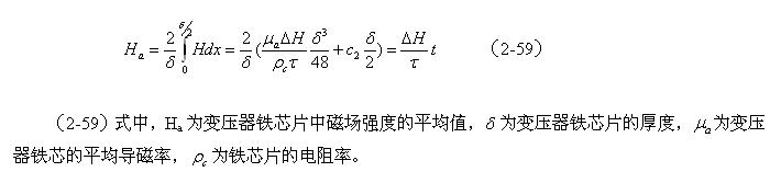 由于在变压器铁芯片内,截面磁场强度的平均值Ha,在任一时间内都必须等于电磁感应所要求的值,即满足(2-45)式的要求,因此对应图2-18对(2-58)式求平均值得: