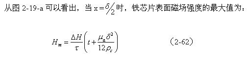 从图2-19-a中可以看出,由于涡流产生反磁化作用的缘故,在铁芯或铁芯片中心磁场强度最低边缘磁场强度最高。