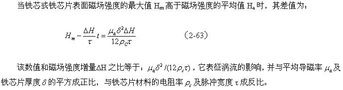 因此,在铁芯片中磁通密度分布是不均匀的,即最外层磁场强度最大,中心处最小。如果涡流退磁作用很强,则磁通密度的最大值可能远远超过其平均值,该数值由已知脉冲的幅度和宽度来决定。