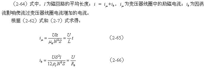 [page]图2-20-a就是根据(2-67)、(2-68)式画出的开关变压器受涡流影响时,输入端磁化过程的等效电路图。