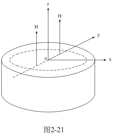 图2-21就是用来求铁氧体圆柱体变压器铁芯内某截面磁场分布的原理图,图中虚线表示交变磁场在变压器铁芯内部感应产生涡流。我们用同样的方法,从(2-59)开始对表示磁场分布的(2-58)式进行积分求平均值,然后求出积分常数c2,即可以求得圆柱体铁芯内的磁场分布式: