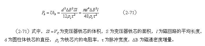 或者,圆柱体变压器铁芯的涡流损耗,与磁感强度增量以及铁芯直径的四次方成正比,与电阻率及脉冲宽度的平方成反比。
