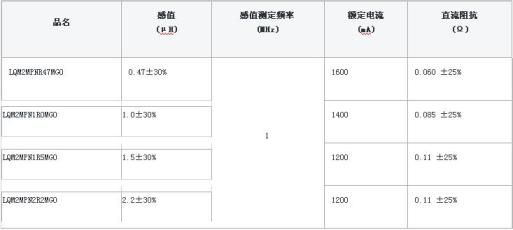 表1是各产品的主要特性,表二则是电流-感值偏执特性。