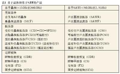 在有线与无线市场迅猛增长的推动下,石英晶体及其高频版SAW器件正广泛用于各个领域,小到电子玩具中简单的无源石英晶体,大到用于最先进的电信网络骨干网定时的复杂同步定时??椋⊿TM),如表1所示。