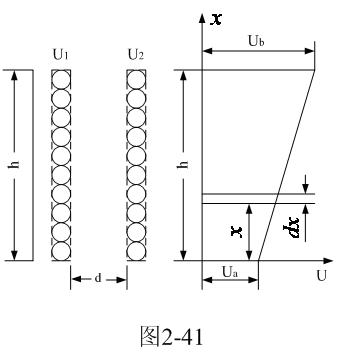 图2-41是分析计算开关变压器线圈之间分布电容的原理图。